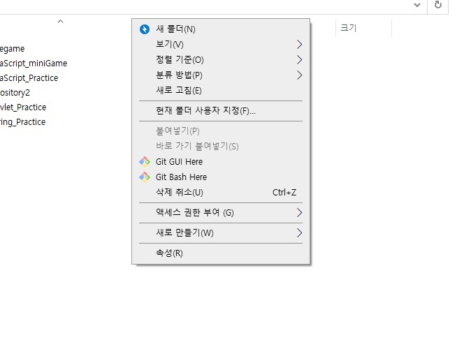 2. PC에 복제 리포지토리를 만들고 싶은 곳에서 마우스 오른쪽 클릭, 깃 배쉬를 연다.
